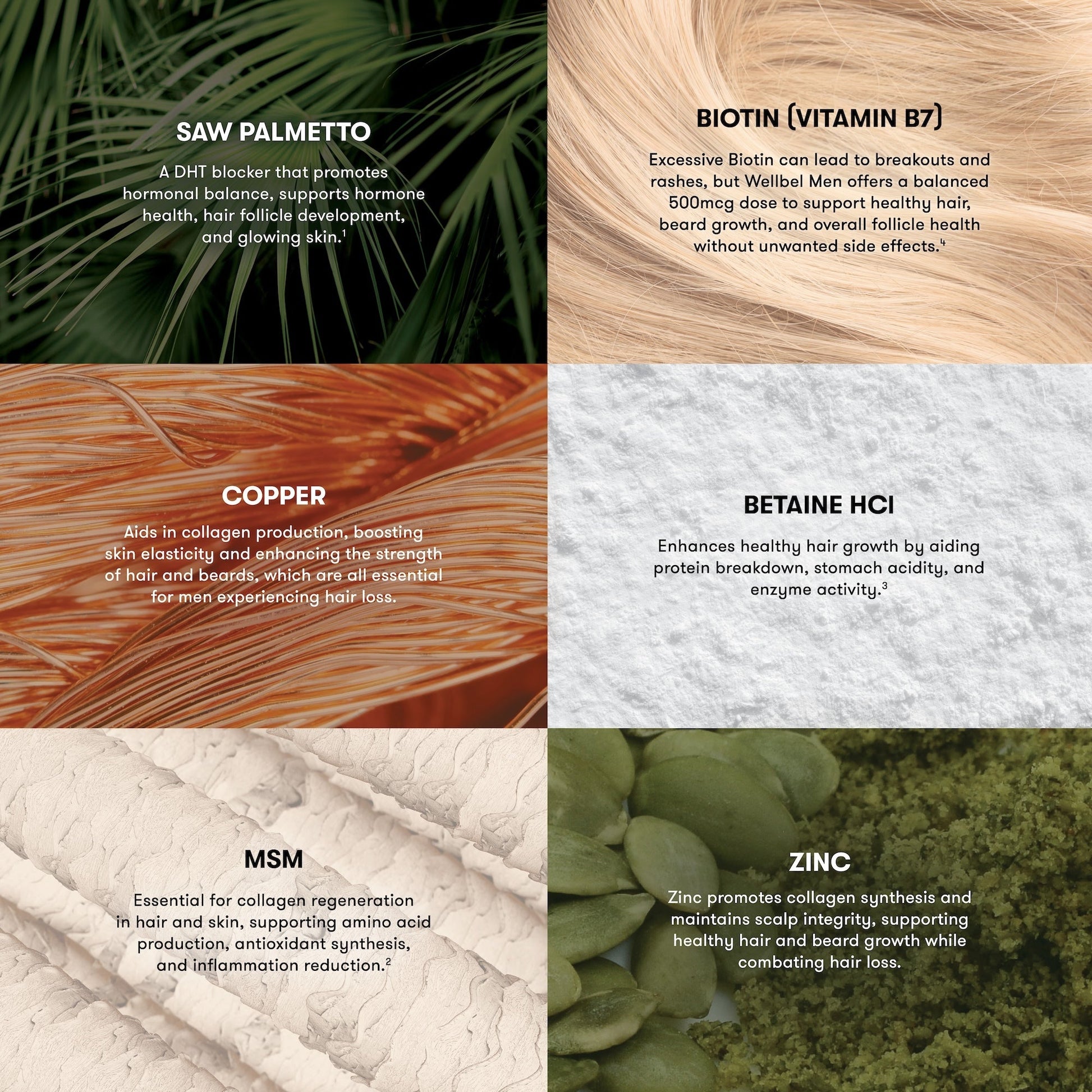 Too much Biotin can lead to unwanted breakouts. Joliio Men contains 500mcg of biotin compared to 3,000-10,000 mcg in other supplements.